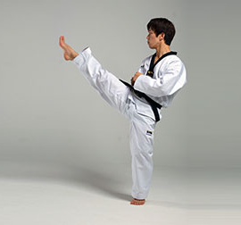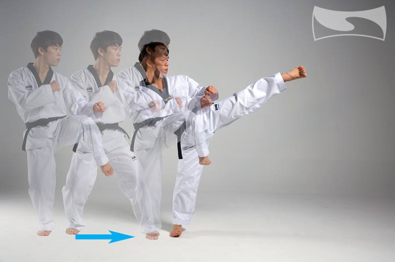 A technique of striking a target from the outside to the inside of the performer with the inside edge of the foot (Reverse Foot Blade). This is a skill that requires swinging of the foot from the outside to the inside with the knee facing upward. This skill is designed to strike the side of an opponent’s face with the reverse foot blade and is used in such skills as pyojeok-chagi (Target Kick).