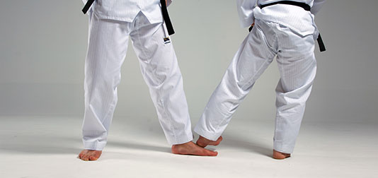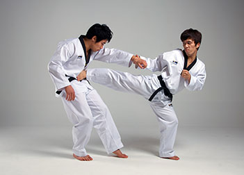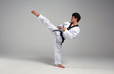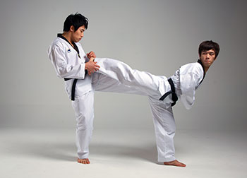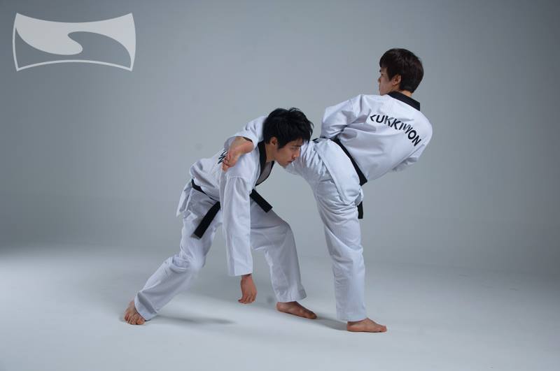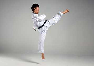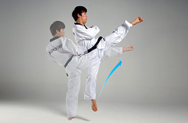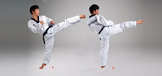 A technique of turning the foot inward to strike a target. This is a skill of pivoting the supporting leg and completely turning the hip in to strike the opponent’s face or trunk with the ball of the foot or the instep. A turning kick is generally employed to strike the opponent’s vital points such as temples and ribs with the ball of the foot. In sparring and kicking practice, the instep is utilized in order to expand the area of the striking surface or to avoid injuring the opponent while still getting points.