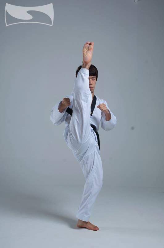 A technique of delivering a kick by turning one’s body to the side. This is a skill of striking the opponent’s face or chest with the outside edge of the foot or the bottom of the foot. The side kick is usually performed by turning one’s body to the side and at the same time bending the leg and extending it to kick the target. In some circumstances, one may push the opponent with the foot to maintain the distance from the opponent.