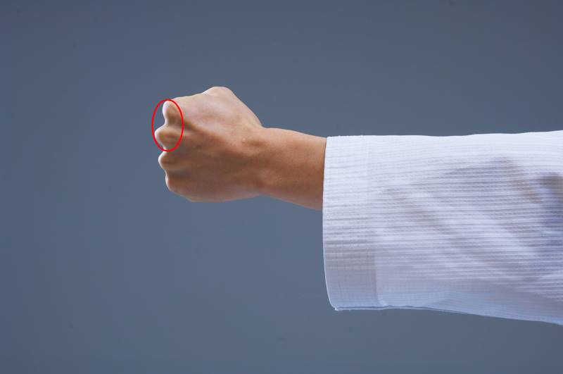 The upper part of the first two knuckles of the index finger and the middle finger when a punch is delivered