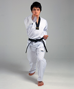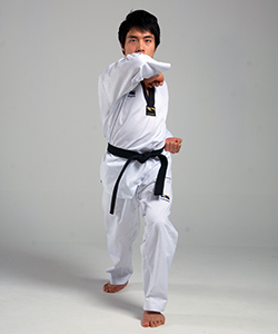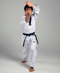 A technique of striking inward or forward with one hand while blocking upward with the other hand. This is a skill of bringing defense and offense together in one movement. The performer can execute olryeo-makgi (Upward Block) using one hand in the form of the Hand Blade while striking the opponent’s jaw or neck with batangson-apchigi (Palm Heel Forward Strike) or sonnal-anchigi (Hand Blade Inward Strike) with the other hand.