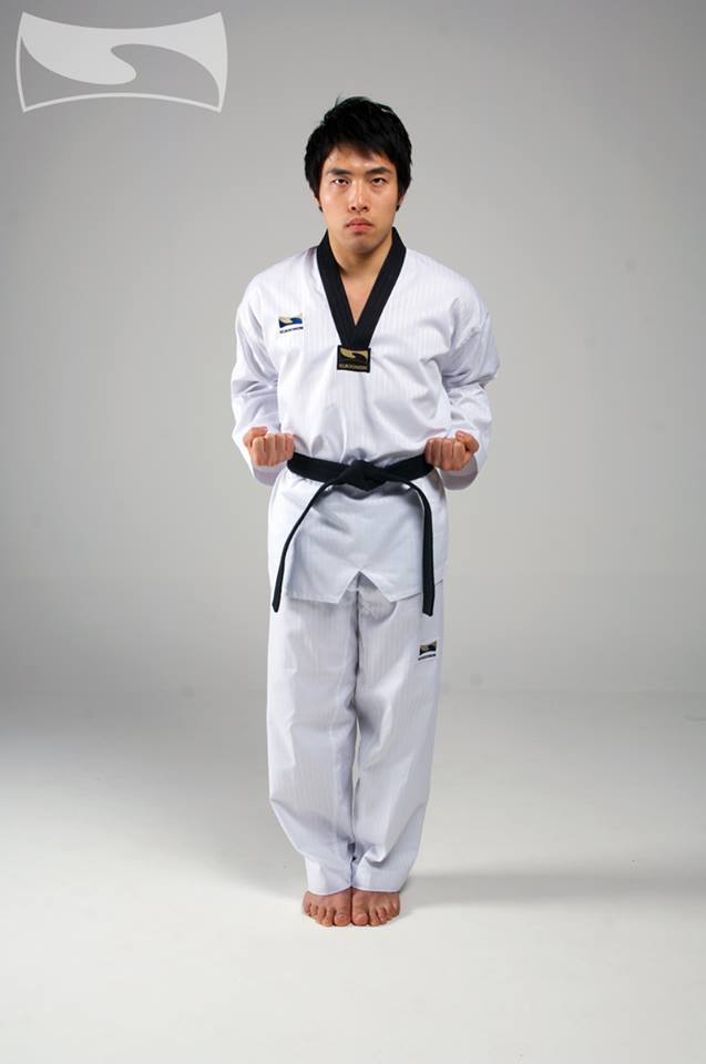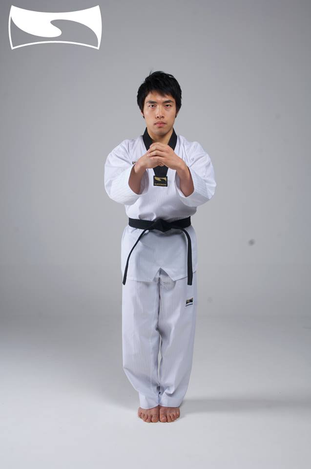 A basic posture adopted before starting most poomsae. This is a ready posture starting in a state of moa-seogi for the feet by moving the left foot one step to the side. Draw the open hands up to the level of the solar plexus and, as one breathes out, slowly transfer both fists to the level of danjeon.