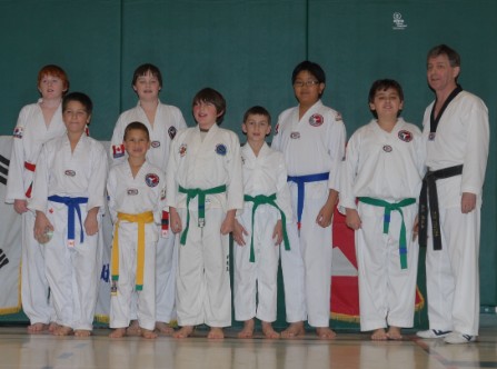Taekwondo North junior demonstration team 'all smiles' with Master Keyver Newmarket December 2009